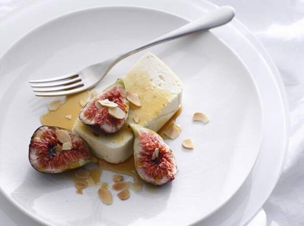 - Полейте на сыр немного меда. Сверху положите ломтики инжира и посыпьте дроблеными орехами.